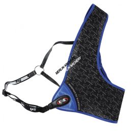 Padded lightweight chest protector for better protection with clip fasteners, adjustable length elastic straps and press studs in the shoulder area.