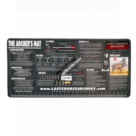 The Archers Mat is a 30” x 14” rubber-backed large counter mat loaded with archery tuning info, including how to measure FOC, an FOC overview, paper tuning tips, whitetail anatomy, common knots (i.e., how to tie d-loops, serving sets, and nock points), arrow wrap installation, measuring kinetic energy, standard bolt sizes, and more.