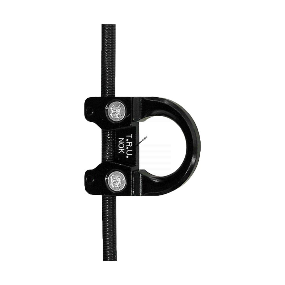 A CNC-Machined anodised aluminium loop that ends nock pinch.